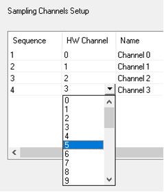 Physical channel number of hardware. HW Channel is counted from 0. By clicking item in list, HW Channel can be modified. For devices that do not support channel sequence change, HW Channel cannot be modified.