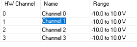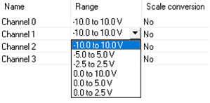 Select input range of channel by clicking item in list. For devices that do not support different range for channel, the ranges of all channels are changed if one of them is modified.