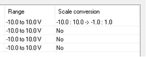 Displays settings for scale conversion. By scale conversion, the value can be converted to any physical value from input range of device (voltage). Click Scaling Setup button to perform scale conversion settings.