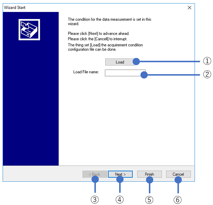 The conditions specified in wizard can be saved to file. Click this button to load a acquirement condition setting file (.clc). |