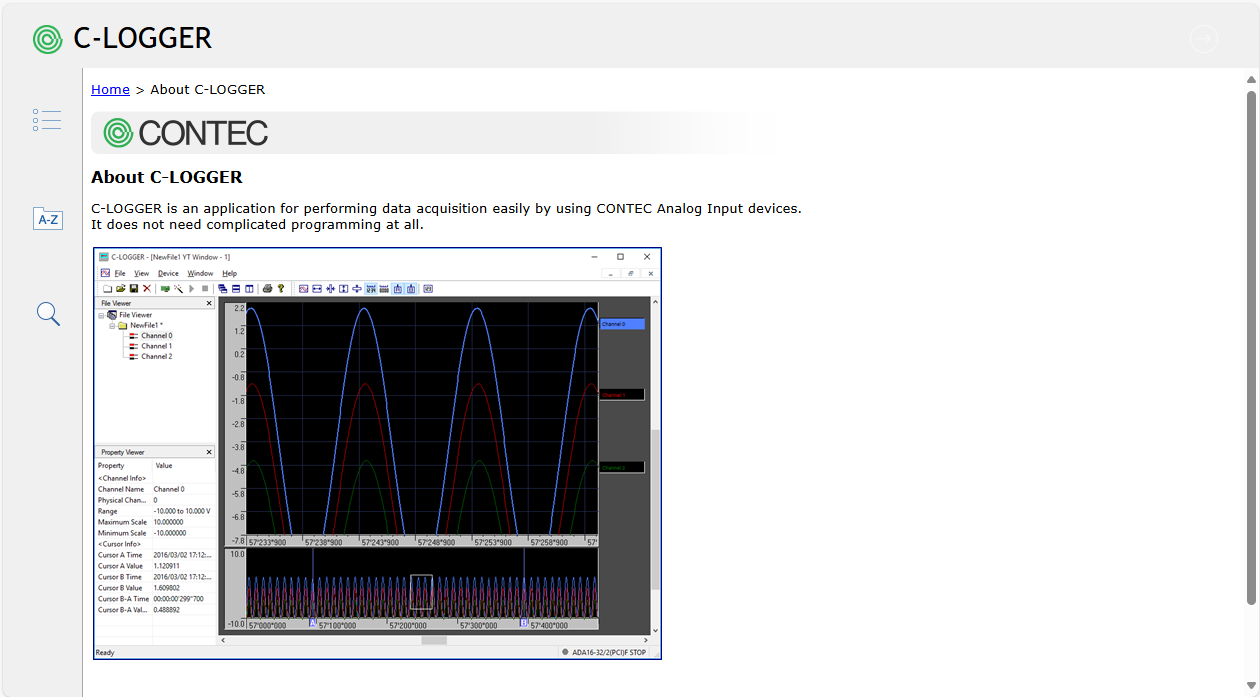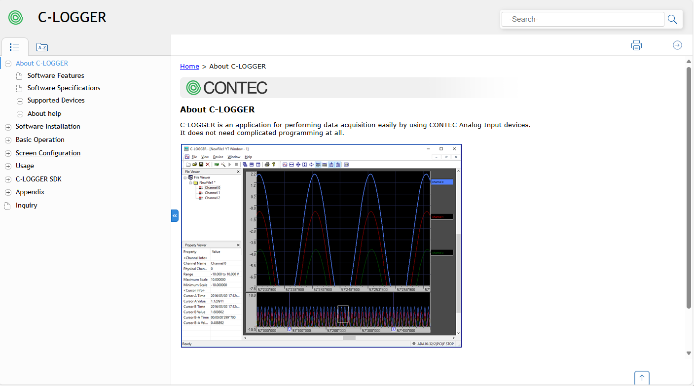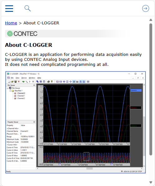 Files in Responsive HTML5 format can be viewed with a standard web browser. We have confirmed that FireFox, Google Chrom, and the latest versions of Microsoft Edge can be used to browse C-LOGGER help.