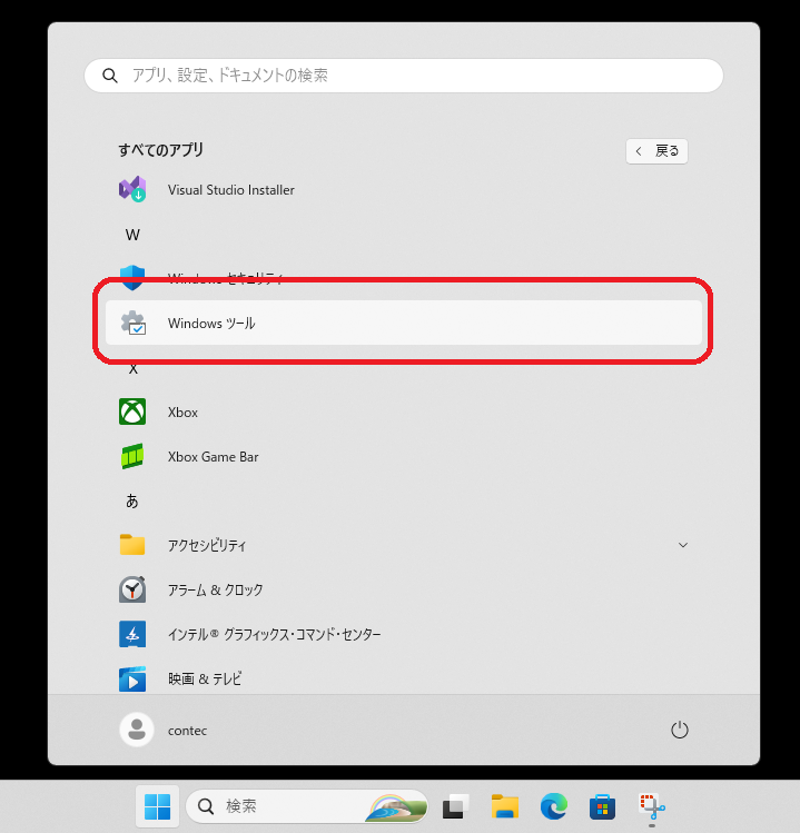 2.「すべてのアプリ」から、「Windowsツール」を選択します。