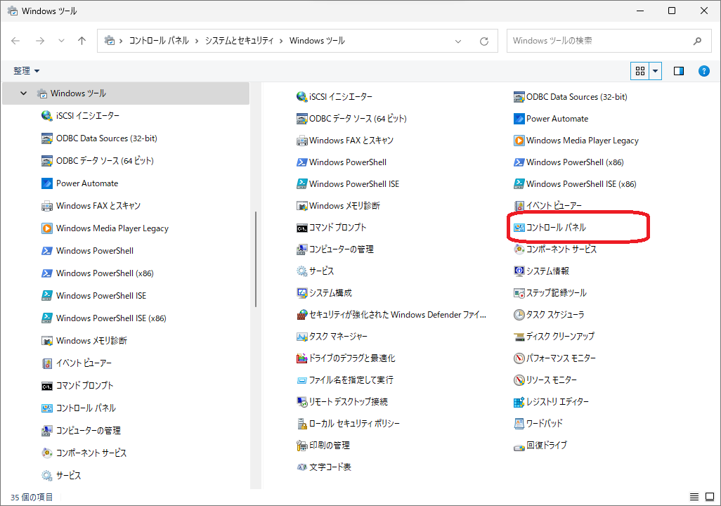 3.「Windowsツール」内に「コントロールパネル」があります。