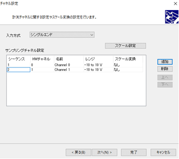 ウィザードではデフォルト値としてシングルエンド入力、チャネル0が設定されています。