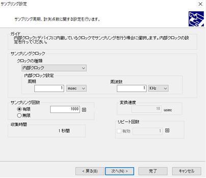 ここではサンプリング回数とサンプリングクロック周期の設定を行います。