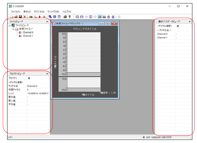画面左下のウィンドウはプロパティビューアと呼ばれるウィンドウで、ファイルやチャネルに関連する情報が表示されます。