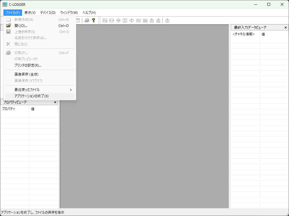 メニューから、「ファイル(F)」ー「アプリケーションの終了(X)」を選択すると、C-LOGGERを終了できます。
