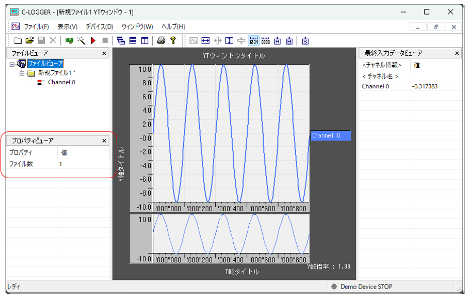 ファイルビューア内でファイルビューアアイコンが選択されている場合、プロパティビューアには以下の情報が表示されます。