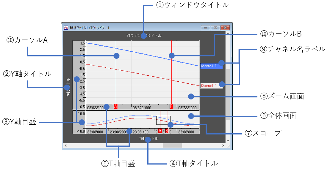 YTウィンドウは、横軸を時間で表示し、縦軸をデータで表示する2次元グラフです。