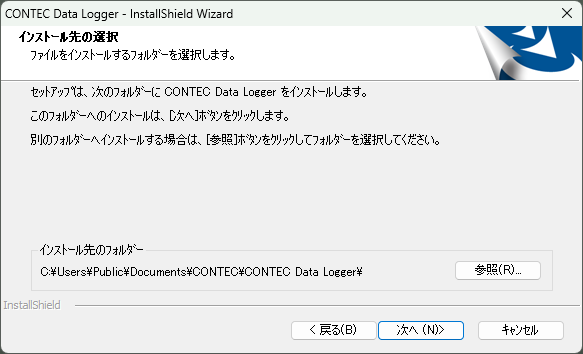 インストール先のフォルダーを確認し、[次へ (N)>]をクリックします。