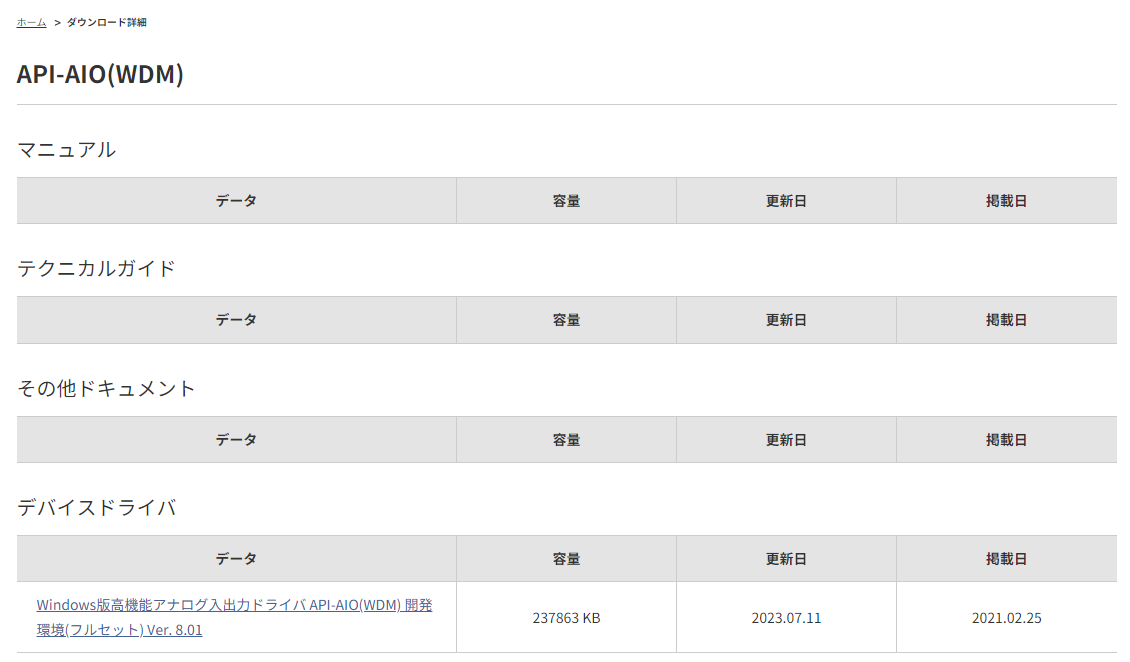 当社のダウンロードサイトから最新のAPI-AIO(WDM)をダウンロードして、インストールしてください。