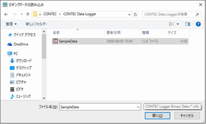 バイナリ形式「CONTEC Logger Binary Data (*.clb)」および、CSV形式「CONTEC Logger Text Data (*.csv)」の読み込みに対応しています。