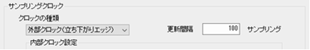 ・内部クロックの場合は、続けてサンプリングクロック周期を設定します。 ・サンプリングクロック周期の値を設定すると、サンプリング周波数は自動的に変化します。 usec(マイクロ秒) また、サンプリングクロック周期は周波数で設定することも可能です。 Hz ・内部クロックの場合、YTグラフの更新周期は自動的に調整されます。 ・外部クロックの場合、データを取り込んでYTグラフを更新するサンプリング間隔を設定できます。 |