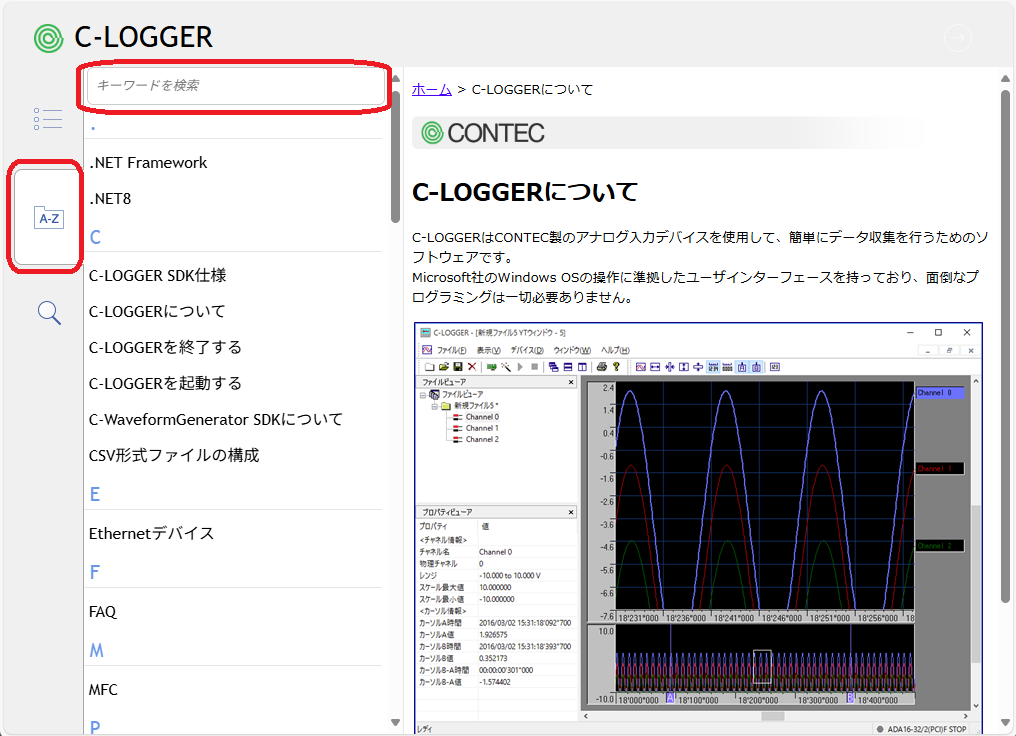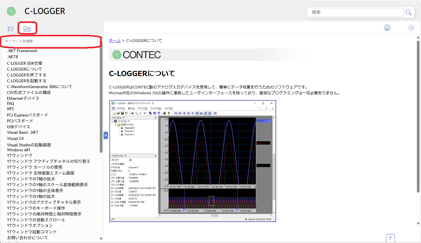 索引一覧から関連するキーワードを選択すると、対象のトピックが表示されます。